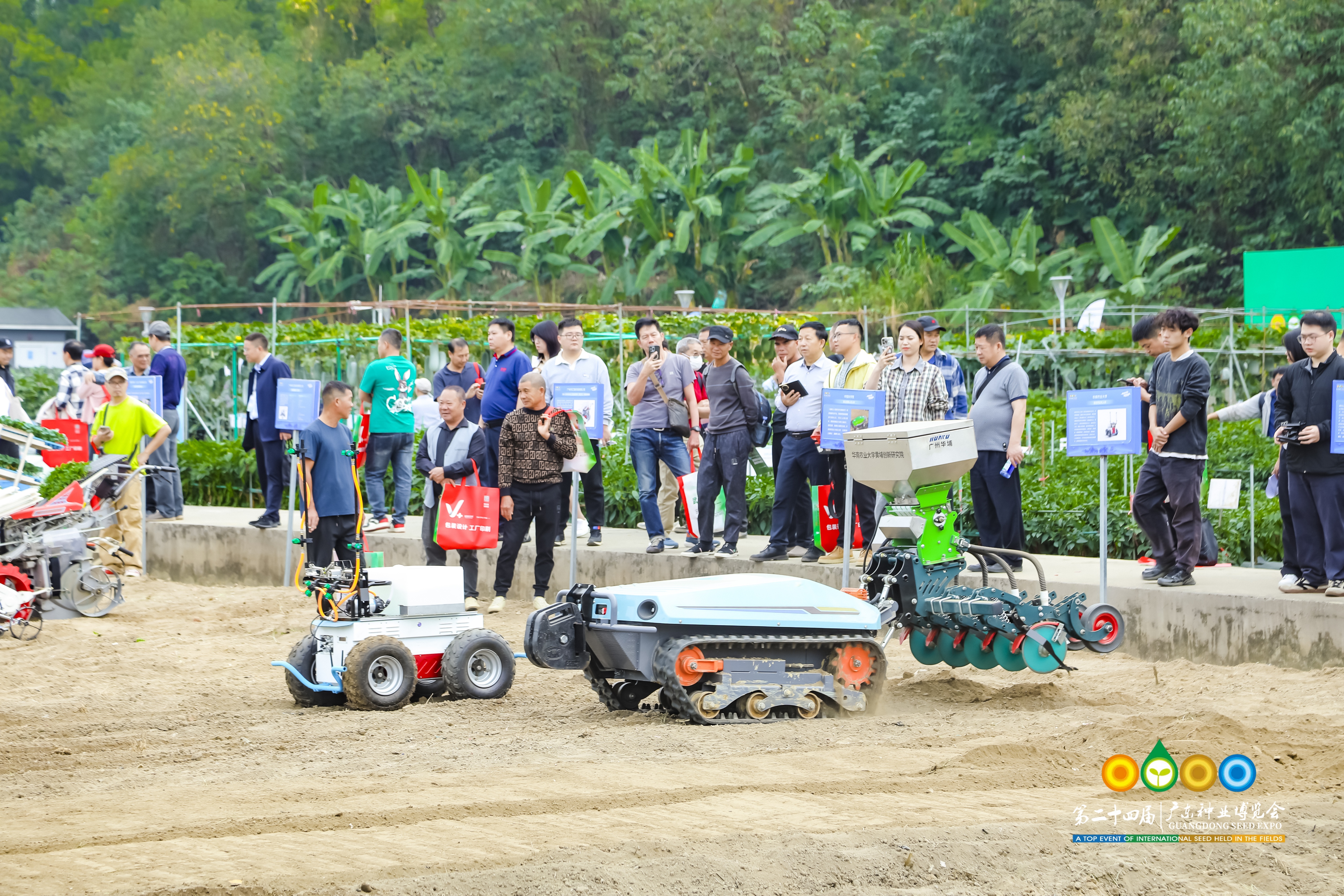 广东种业博览会上的农机演练展示。
