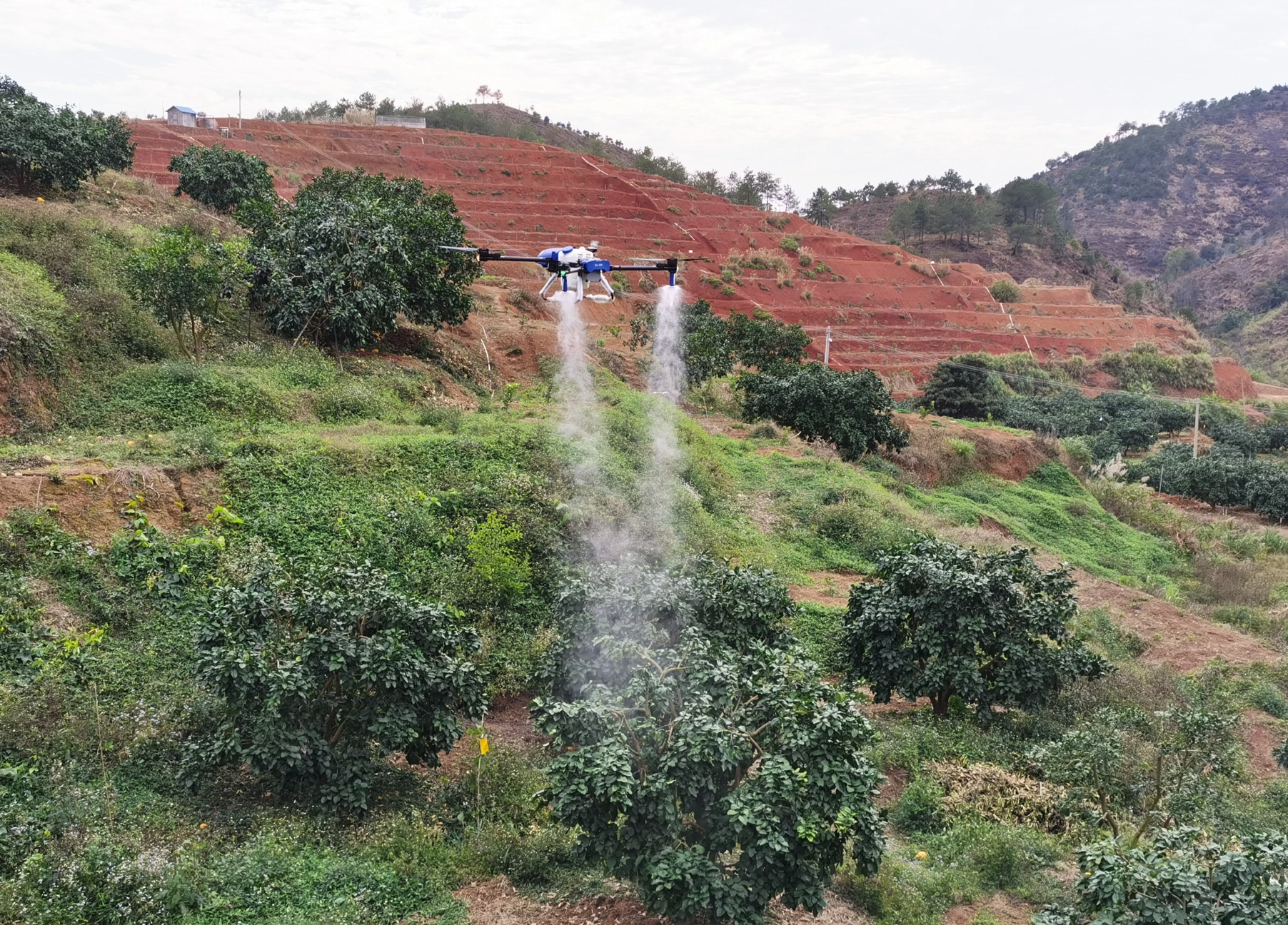 农用无人机田间作业。